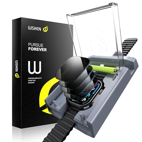 WSKEN 4-pack integritetsskärmskydd för Apple Watch Series Ultra 3/2/Ultra 49 mm – [Auto Align Box] [100 % noll bubbla] full täckning 9 H + härdat glas iWatch-tillbehör, anti-fingeravtryck, reptålig