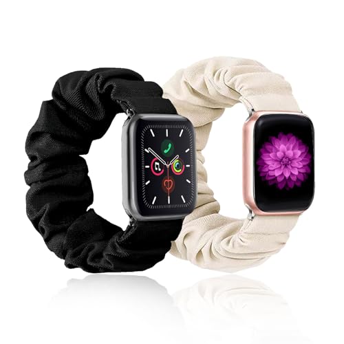 2 st Scrunchie elastiskt armband kompatibelt med Apple Watch Series 8 7 6 5 4 3 2 1 SE Ultra 38 mm/40 mm/41 mm, mjuka Scrunchies för klockor för män och kvinnor tillbehör (beige, svart)