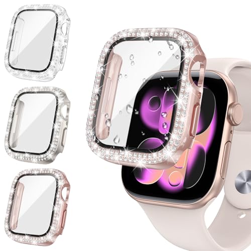 Neitra [3-pack till Apple Watch skärmskydd fodral serie 11/10 42 mm tillbehör, iWatch hård PC diamant stötfångare fodral inbyggd härdat glasfilm, skyddande bling ansiktsskydd för kvinnor flickor, 42
