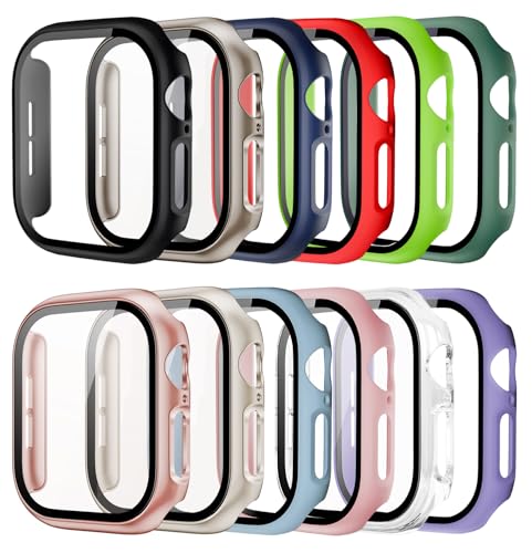 14-pack fodral med härdat glas skärmskydd för Apple Watch serie 7 45 mm, JZK hård PC heltäckande smalt skydd stötfångare skyddande fodral HD ultratunt skydd för iWatch 45 mm tillbehör