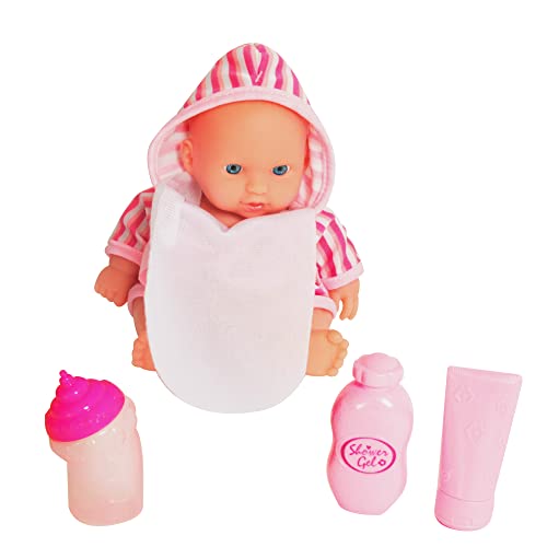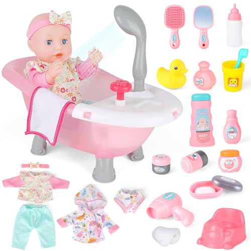 deAO Badrumsdocka för flickor - 36 cm docka badleksak med badkar set inkluderar docka, badkar, tillbehör och badrock