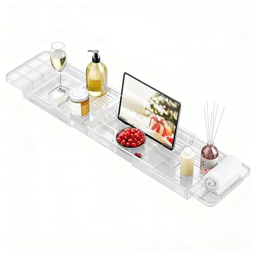 Akryl Badkar Bricka Justerbar Badkar Förvaringsbricka, Badkar Hylla Bokhållning, Ipad, Telefon, Glas, Ljus, Tillbehör för Badkar Transparent
