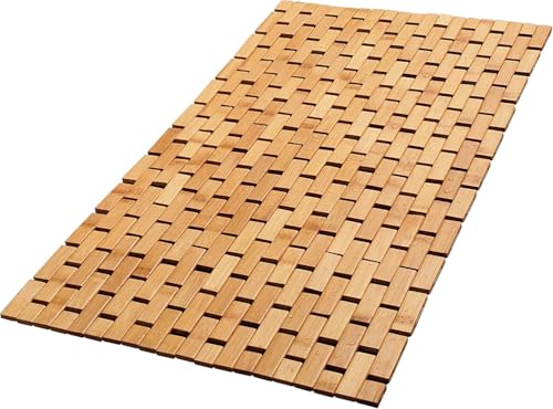 ZPirates badrumsmatta i naturlig bambuträ – stor, 76 x 45 cm (L x B) vikbar badmatta, tillbehör för badrum bastu spa badkar och utomhus