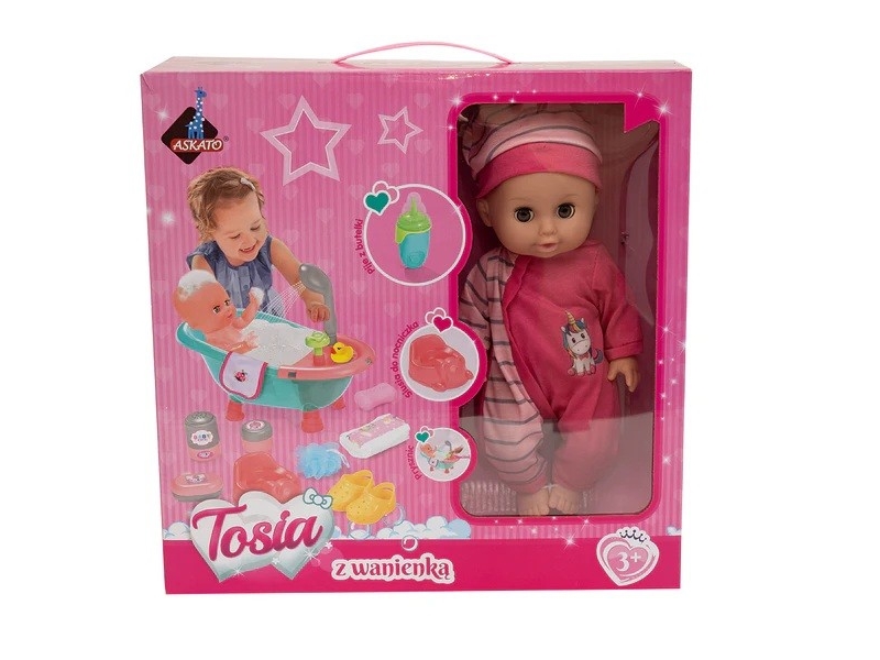 Askato Tosia Docka Med Badkar I Rosa Klänning Med Tillbehör