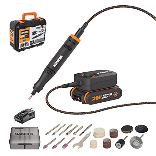 WORX MAKERX Trådlöst Roterande Verktyg WX739 (levereras med: batteri, laddare och hub - set med 20 tillbehör - hastighet 5 000-3500 varv/min)