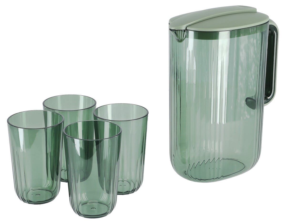 Clas Ohlson Tillbringare i plast med lock och 4 glas, 2 liter