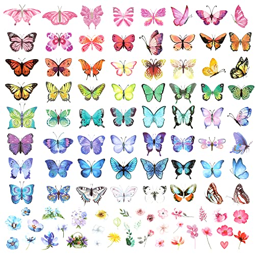 100st Tillfälliga Tatueringar Fjäril, Färgglada Små Fjärilsblommor Tatueringsklistermärken Vattentäta Söta Små Tatueringar för Vuxna Barn Ansikte Kropp Födelsedagsfest Karneval