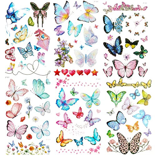 ACWOO tillfälliga tatueringar för fjärilar, 6 st fjärilsglittertatueringar för barn, vattentäta avtagbara klistermärken för flickor Festväskor, födelsedag, presenter, festtillbehör