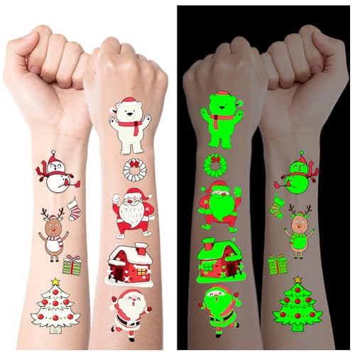 ACWOO tillfälliga tatueringar för barn, 10 ark Glow In The Dark Jultatueringar klistermärken, vattentät lysande falska tatueringar för julklapp Festpåse Utfyllnadsdekoration (Jul-B)