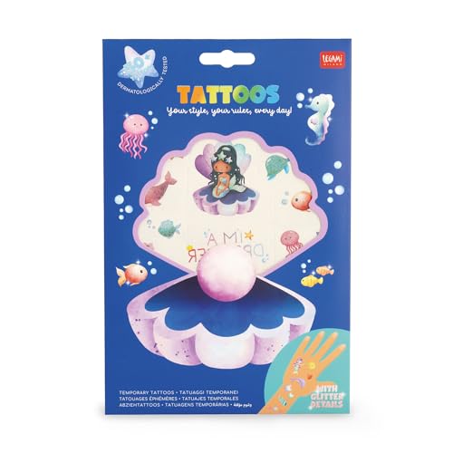 Legami – tillfälliga tatueringar för barn, sjöjungfrutema, tvättbar, svett- och vattentät, med glitterdetaljer, lätt att applicera, hudvänlig, dermatologiskt testad