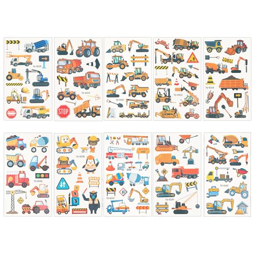 10 Lakan Bilar och Lastbilar Tillfälliga Tatueringar för Barn, Blandade Stilar Tillfälliga Tatueringar för Bilar Tatueringar för Byggfordon för Barn Födelsedagsfester Presentpåsar