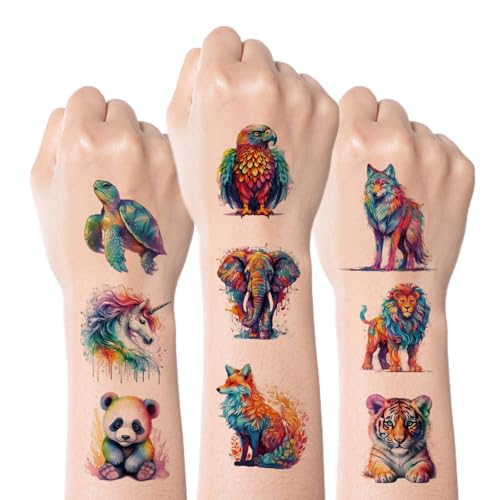 60 stycken akvarell djur tillfälliga tatueringar, söta twillklistermärken för barn, tatueringar för barn, perfekt för fester och gåvor, inkluderar arm- och axeldesign
