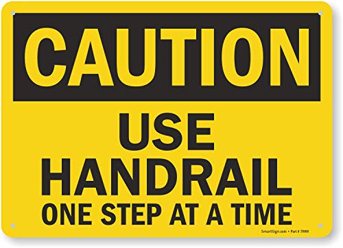SmartSign "Caution - Use Handrail, One Step at a Time" skylt | 25,4 cm x 35,56 cm aluminium