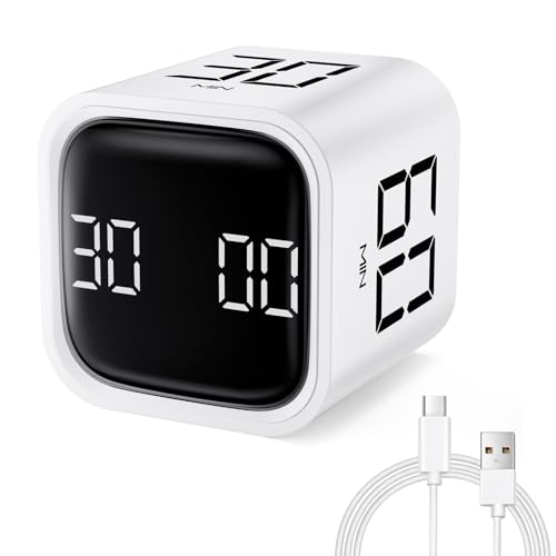 Milgeo Gravity Sensing Timer, Pomodoro Technology Timer, Time Management Tools, Ear for Adhs, Work, Office, Study, Tasks, Kids, Cooking, Sports (white)