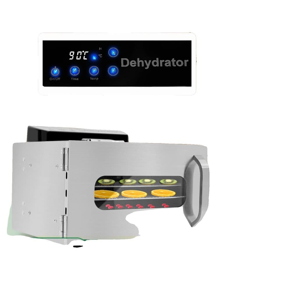 Matdehydrator, 6-lagers kapacitet, justerbar temperatur från 30℃ till 85℃, digital timer upp till 24 timmar, tillverkad av rostfritt stål, 220V ström