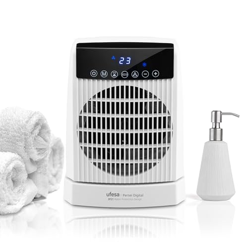 Ufesa Persei IP21 digital badrumsvärmare, 3 nivåer varm/kall effekt, oscillerande bas, justerbar termostat, 24 timmars timer, LED-skärm, överhettningsskydd och A 2 000 W