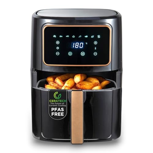 BERGNER Copperly Varmluftsfritös utan PFAS 1 800 W, 6,9 l, 8 matlagningsprogram, luftfritös med keramisk beläggning, temperaturinställning 80–200 °C, timer upp till 30 minuter