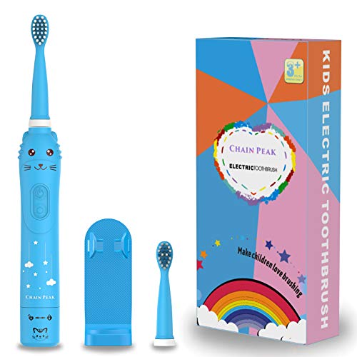 Sonic Elektrisk tandborste för barn, uppladdningsbar smart tandborste för barn, Sonic tandborste för pojkar Flickor i åldern 3-12 med 30-tals påminnelse, 2 minuter timer, 6 lägen, 8 borsthuvuden, väggmonterad hållare (8650 Blå + 8 huvuden)