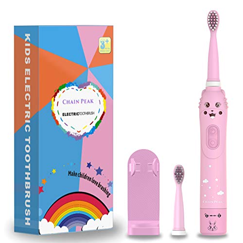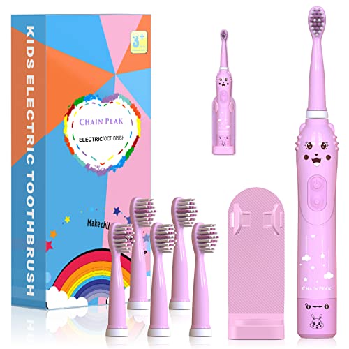 Sonic Elektrisk tandborste för barn, uppladdningsbar smart tandborste för barn, Sonic tandborste för pojkar Flickor i åldern 3-12 med 30-tals påminnelse, 2 minuter timer, 6 lägen, 4 borsthuvuden, väggmonterad hållare (8650 Rosa + 6 huvuden + hållare)