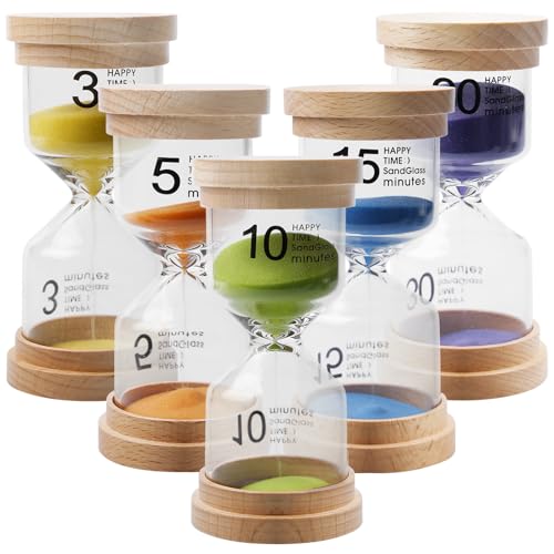 Sandglas set för barn, trä, 5 stycken sandtimerset 3/5/10/15/30 minuter, färgglada timglas för barn, timer som inte faller av för tandborstning, spel, matlagning, dekoration, hus, kontor