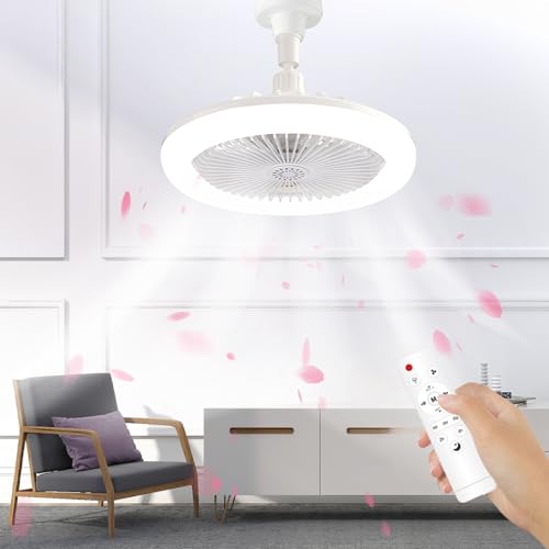 WRMING Liten tyst takfläkt med LED-ljus och fjärrkontroll E27 30 W taklampa med fläkt sovrum dimbar takfläkt lampa, timer bärbar design