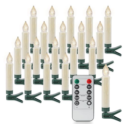 Rhytsing Uppsättning av 20 clip-on ljus för julgran med fjärrkontroll, batteridrivna LED-ljuslampor med timer, droppande design, inomhus- och utomhusbruk