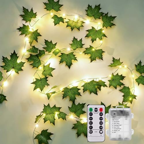 Joycome Batteridriven ljusslinga med murgröna, 10 m, 100 lysdioder, konstgjord girlang med fjärrkontroll, timer, 8 lägen, vattentät julbelysning för estetik, rum, balkong, bröllop, utomhusbruk,