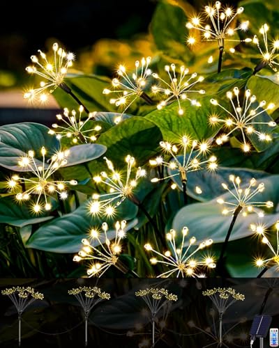 Redefun Trädgårdsdekoration solcellslampor för utomhusbruk 4 x 160 LED solkontakt trädgårdsbelysning, solcellslampor maskros med fjärrkontroll, timer, vattentäta solcellslampor fyrverkeri för uteplats