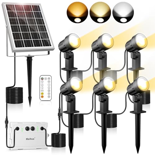 MEIHUA Solcellsstrålkastare för utomhusbruk med fjärrkontroll 2 700 K 4 000 K 6 500 K solträdgård IP66 vattentät 3 ljusstyrkor 2 dynamiska lägen timer, trädgårdsbelysning för trädgårdar träd