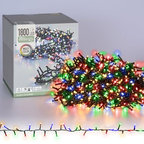 ECD Germany LED-kluster ljusslingor färgglada, 36m, 1800 LED, multifunktion 8 lägen, med timer, julbelysning för inom- och utomhusbruk vattentät IP44, julgransbelysning 230V med stickkontakt