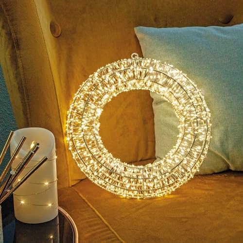 Hellum 153095 LED-ljuskrona för utomhusbruk och inomhus, med timer, daggpärlor, extern transformator, 1 440 varmvita ljus, 30 cm diameter, juldekoration, bröllop/trädgårdsdekoration