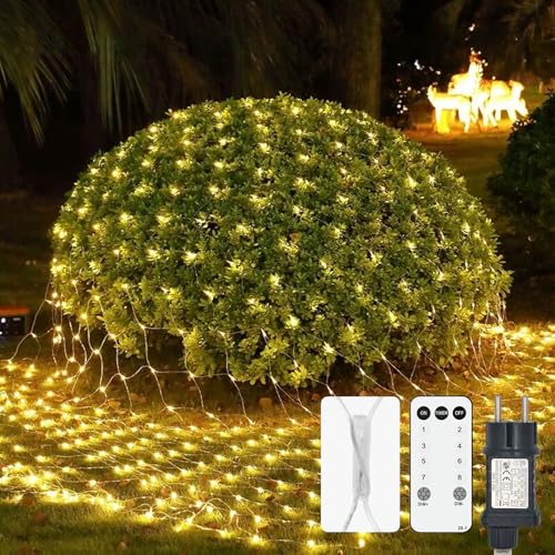 Liyade Utomhusljusnät för utomhusbruk, 2 x 2 m, 144 LED-ljusslinga för utomhusbruk, varmvit med uttag, vattentätt ljusnät för inomhusbruk med fjärrkontroll och timer 8 lägen, för trädgårdsbuskar