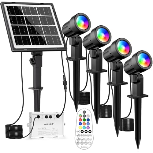 MEIKEE Solstrålkastare RGB + vit trädgårdsbelysning sol 10 färger 30 cykellägen 2 ljusstyrka timer solcell dusk to dawn IP66 vattentäta trädgårdslampor för utomhusbruk, trädgård, träd, damm,