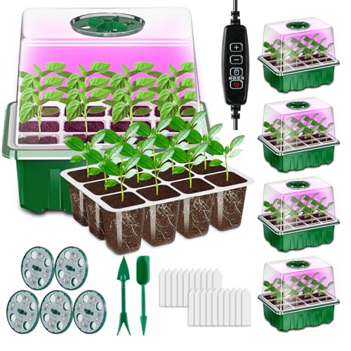 AONYIYI 5 stycken, 60 celler odling, växthus, liten odlingslåda, inomhushus med ljus, odlingssats med timer, odlingssats, växter för utomhusbruk, inomhus