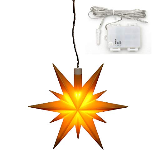 Dekohelden24 Julstjärna i gult plast, lämplig för inomhus- och utomhusbruk, inklusive LED-belysning och 6 timmars timer, för batteridrift. Mått L/B/H: 13,5 x 5,5 x 12 cm.