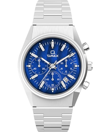 Timex Q Falcon Eye Chronograph 40 mm herrklocka - Armband i rostfritt stål. blå urtavla, boett i rostfritt stål TW2W33700