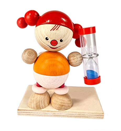 Hess Holzspielzeug 14582-klocka för borstning av trä, inklusive ett timglas med färgad sand, flicka Lucia, handgjord, för barn att ta hand om sina tänder, 14595