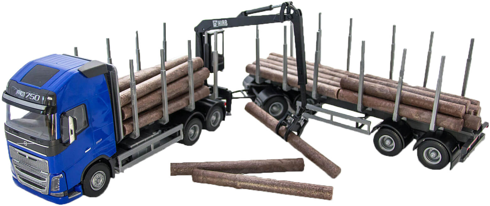 Emek Volvo FH16/750 Timmerbil Blå med Kranhytt