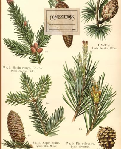 Beautiful Vintage composition notebook: College Ruled 100 Pages - 7.5" x 9.25" Red pine twigs and cones: For lovers of nature and plants. The beauty ... Perfect gift for adults and childrens.