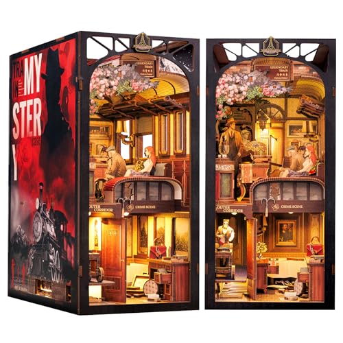 Book Nook Kit-DIY Miniatyr Dollhouse Booknooks Kit for vuxna, 3D-träpusselbokstöd, Tiny Doll House Model Building, Bokhylleinsättningsdekor med LED-ljus for tonåringar(K Train Mystery Case)