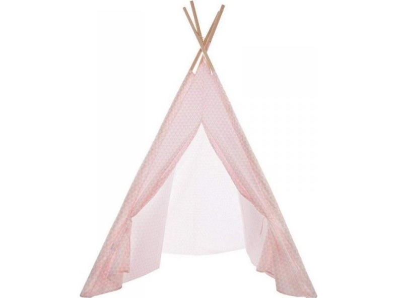 Relaxdays Tipi tält för barn, platt, barnrumstält, H x B x D: 92 x 120 x 86 cm, inomhus, Wigwam barntält, vit-rosa