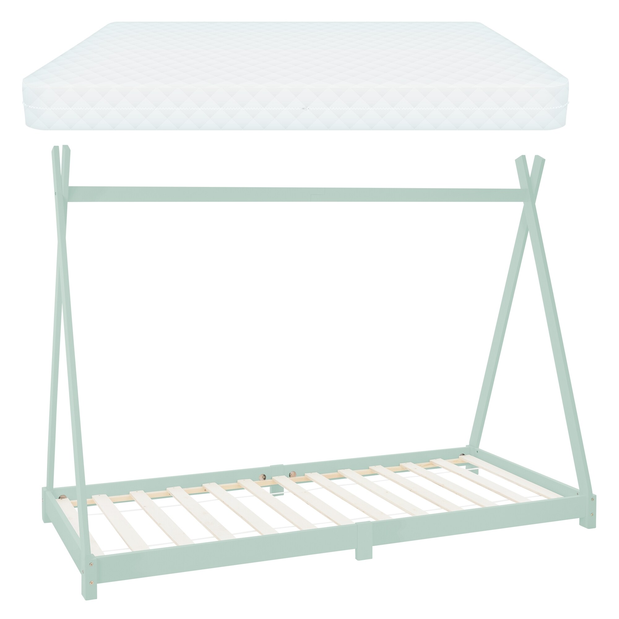 ML Design cot tipi 90x200cm med slatt ram, mint, indisk säng gjord av massivt