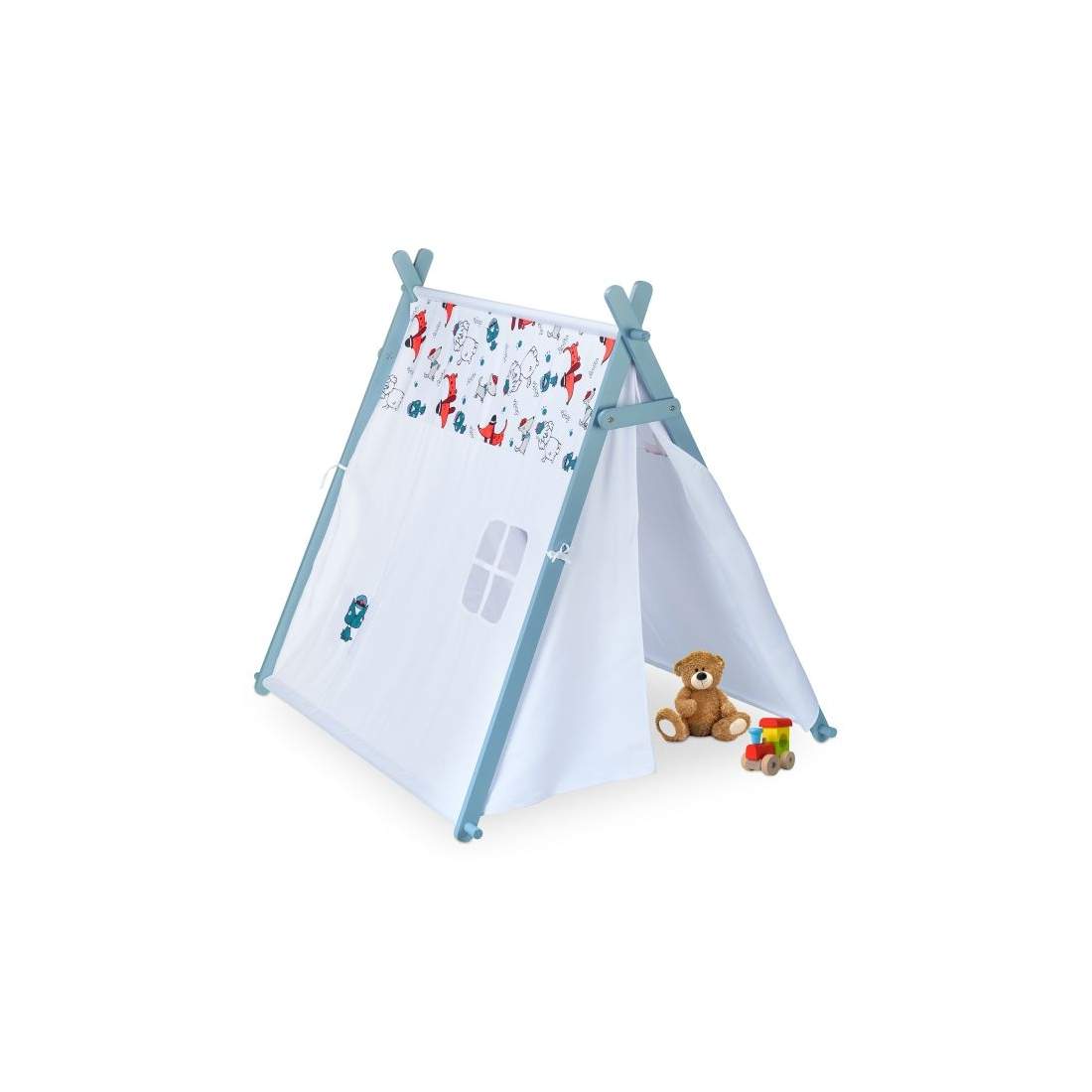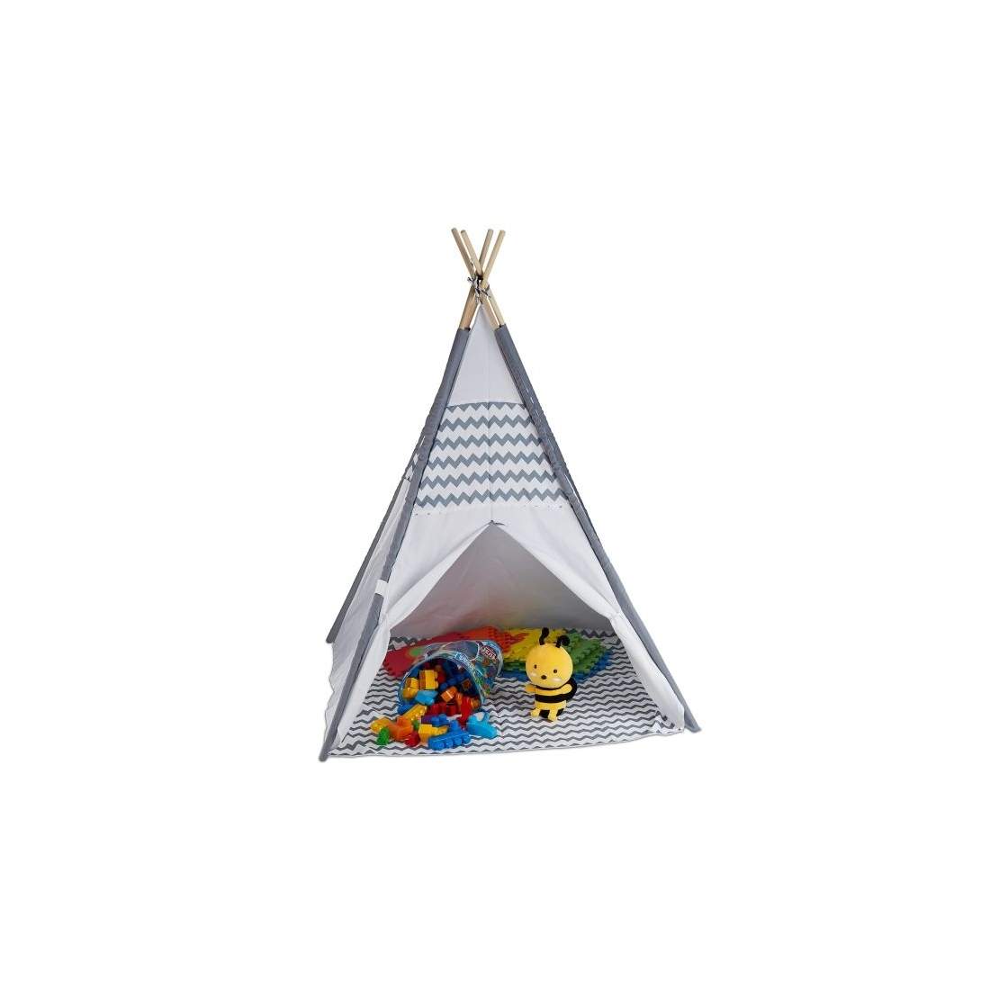 Relaxdays 10035301 Tipi-tält för barn, med fönster, barnrum tält, Wigwam barntält, H x B x D: 92 x 120 cm, vit-grå