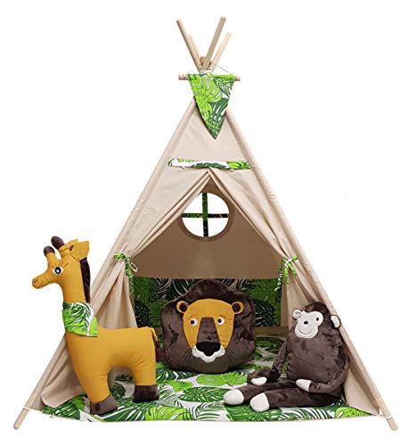 Izabell® Barnens lektält tipi set för barn inomhus utomhus leksakstält indianer indianertipi med fönster och med tillbehör tipitält URBAN djungel