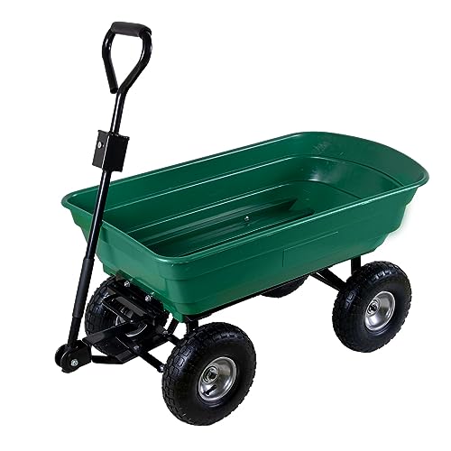 Trädgårdsvagn med tipp, 75 liters plasttråg, handvagn, tippvagn, kan belastas upp till 300 kg, med styraxel och luftfyllda däck på stålfälg, avtagbart handtag, rullvagn, transportvagn, trädgårdskärra,