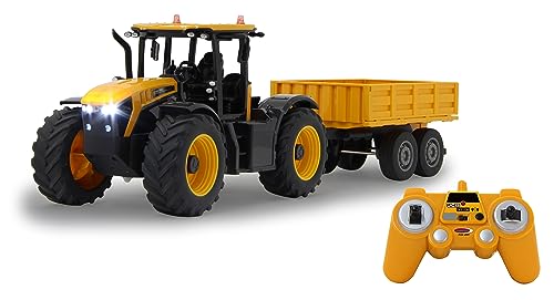 JAMARA JCB Fastrac traktor med tippvagn 1:24 2,4 GHz – 2 hjuldrift, profilerade gummidäck, LED-ljus, jordbruk