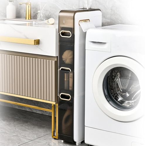 Slim Bathroom Storage Cabinet, Narrow Floor Storage Cabinet, Plastic Drawers Organizer with Tissue Box and Wheels, for Small Spaces, Kitchen, Laundry,Living Room,White + brown,4 tiers
