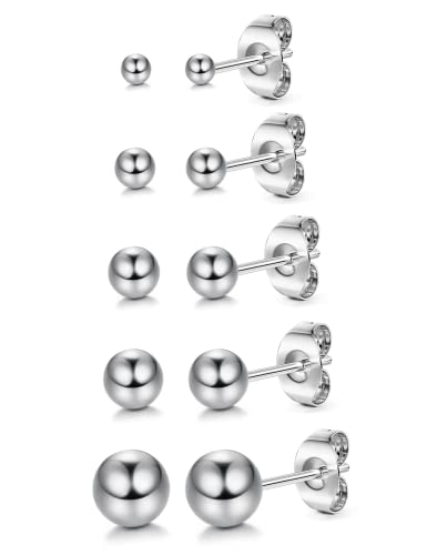 Adramata 5 par G23 Titan örhängen för kvinnor män känsliga öron, liten boll/CZ örhängen, 3/4/5/6/8 mm allergivänliga, 20 g, B