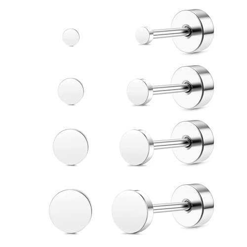 Cassieca 4 par G23 titanörhängen för kvinnor och män allergivänliga örhängen medicinska örhängen helixpiercingar silver titan örhängen 2/3/4/5 mm, Titan