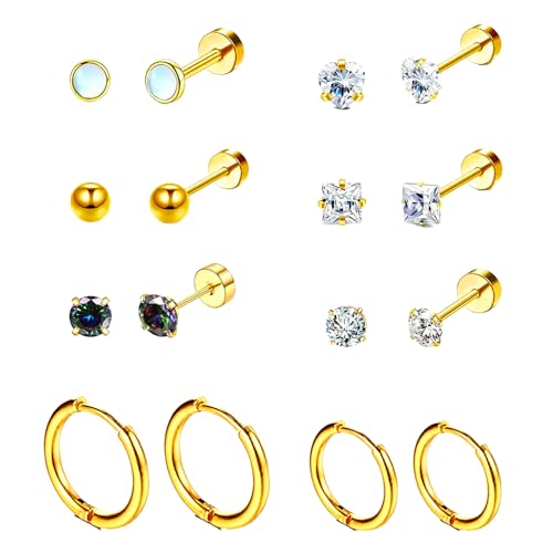Adramata Titan Örhängen Kvinnor för känsliga öron, Opal Cubic Zirconia Månsten Onyx Brosk Piercing Örhängen, 4mm Hypoallergena Titan Örhängen, 20G
